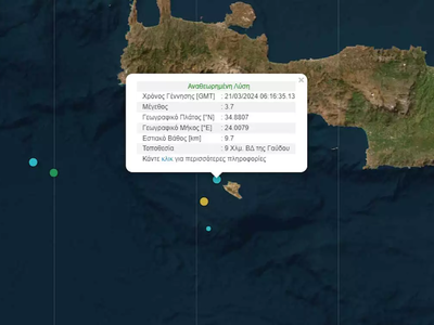 Σεισμός μεγέθους 3,7 βαθμών της κλίμακας Ρίχτερ σημειώθηκε στη Γαύδο νωρίτερα το πρωί της Πέμπτης 21 Μαρτίου.