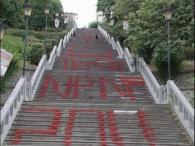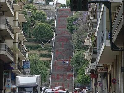 Με κόκκινη μπογιά έβαψαν τις σκάλες της Αγίου Νικολάου ανεγκέφαλοι «φίλαθλοι» της Παναχαϊκής. Οι οπαδοί της κοκκινόμαυρης ομάδας φρόντισαν για την προς το χειρότερο, αλλαγή της εικόνας της ιστορικής σκάλας, που αποτελεί το σήμα κατατεθέν της πόλης.