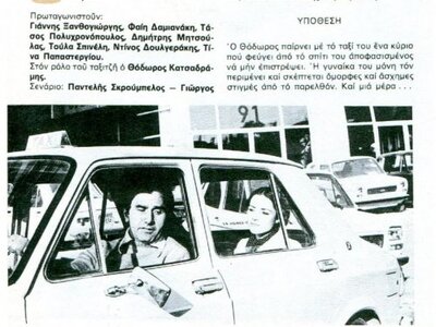 Εκείνη την περίοδο φρέσκος από την πολύ μεγάλη απήχηση της σειράς «Ο Ταξιτζής» ο Θόδωρος Κατσαδράμης είχε πραγματοποιήσει περιοδεία στην περιφέρεια με θεατρική του παράσταση και απ’ όσο θυμόμαστε είχε έρθει και στην Πάτρα και οι αφίσες του είχαν γεμίσει χαρακτηριστικά σημεία της πόλης.