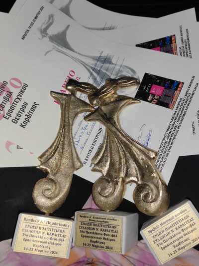 Με 3 Βραβεία στις αποσκευές του γύρισε από την Καρδίτσα το ΘΕΑΤΡΙΚΟ ΕΡΓΑΣΤΗΡΙ ενηλίκων της «ΠΟΛΥΦΩΝΙΚΗΣ» (Διεύθυνση: Αθηνά Καλλιμάνη- Γεωργιτσοπούλου), που έλαβε μέρος στο 39ο Πανελλήνιο Φεστιβάλ Ερασιτεχνικού Θεάτρου Καρδίτσας, που πραγματοποιήθηκε 14 έως 23 Μαρτίου στο Δημοτικό Κινηματοθέατρο της πόλης, με την οργάνωση της Ένωσης Πολιτιστικών Συλλόγων Καρδίτσας και τη συνδιοργάνωση της Περιφέρειας Θεσσαλία, Δήμου Καρδίτσας, ΠΕΔ Θεσσαλίας και Επιμελητηρίου Καρδίτσας.