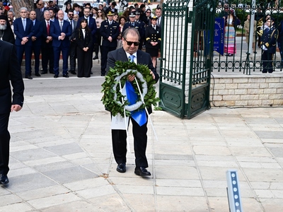 Ακολούθησε η κατάθεση στεφάνων στο Ηρώον στον Δημοτικό Κήπο των Υψηλών Αλωνίων Αιγίου και η παρέλαση στην παραλία, την οποία παρακολούθησαν με καμάρι εκατοντάδες δημότες και επισκέπτες.