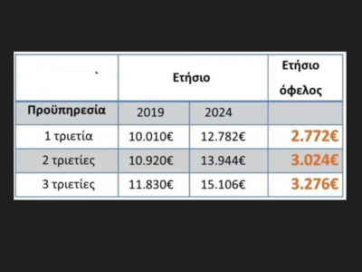 Σημαντικό όφελος έως 3.276 ευρώ σε ετήσια βάση και για τους εργαζόμενους με προϋπηρεσία που αμείβονται με τον κατώτατο μισθό (με συμπληρωμένη τριετία πριν το 2012)
