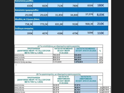 Ενδεικτικά, τα επιδόματα, μετά την αύξηση του κατώτατου μισθού κατά έως 6,5%, θα διαμορφωθούν ως εξής: