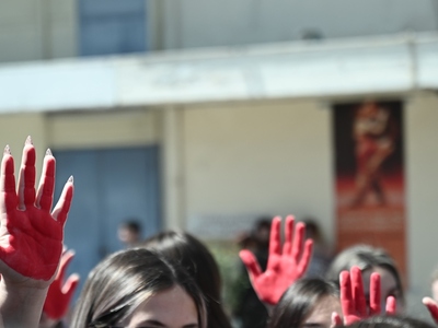 Επίσης, έβαψαν ως ένδειξη διαμαρτυρία και κόκκινα τα χέρια τους.