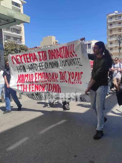 Αντιπολεμικό συλλαλητήριο πραγματοποίθηκε το πρωί του Σαββάτου στο κέντρο της Πάτρας.