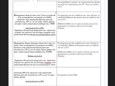 Ο Δήμος με γνώμονα τις ανάγκες του Πατραϊκού λαού απέναντι στις εφαρμοζόμενες αντιλαϊκές πολιτικές, παρά το ασφυκτικό νομοθετικό πλαίσιο και την αυξανόμενη μείωση της κρατικής χρηματοδότησης, συνεχίζει τις απαλλαγές από δημοτικά τέλη, εξαντλώντας κάθε περιθώριο, υλοποιώντας μέτρα ανακούφισης των λαϊκών οικογενειών.