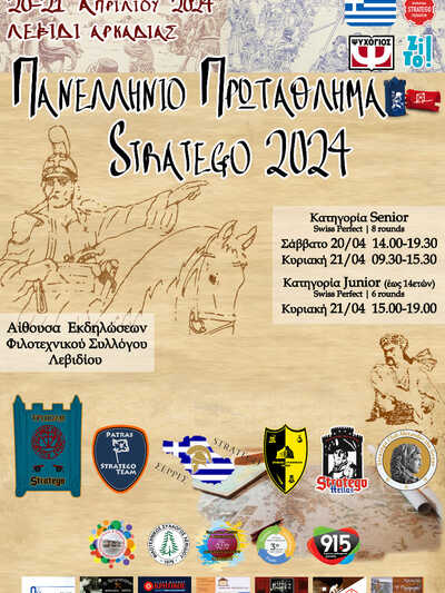 Το Σαββατοκύριακο 20&21 Απριλίου, η Patras Stratego Team θα βρεθεί στο Λεβίδι, όπου η νεοσύστατη ομάδα της Τρίπολης διοργανώνει το Πανελλήνιο πρωτάθλημα Stratego.
