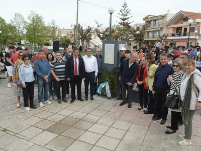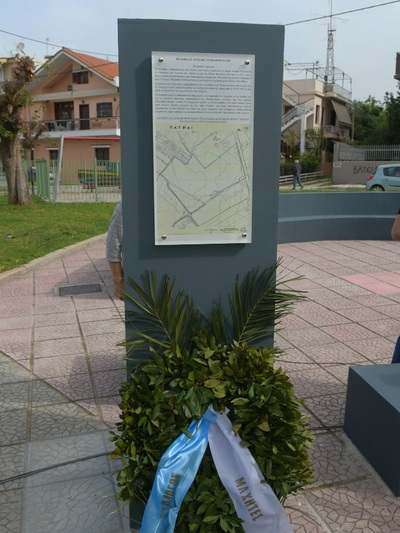 Από τον Δήμαρχο Κώστα Πελετίδη - Το μνημείο κατασκευάστηκε από το Κληροδότημα Πελοπίδα Α. Σταθακόπουλου & τον Δήμο, αναγνωρίζοντας την ευγενή προσφορά και την ευαισθησία του
