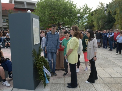 Χαιρετισμούς απεύθυναν ο αρχιτέκτονας μηχανικός, κατασκευαστής του Μνημείου, Ανδρέας Λάζαρης, η Πρόεδρος των «Μαχητών», Μάρθα Χριστοπούλου, ο Πρόεδρος του Συλλόγου Γονέων και Φίλων Ατόμων με Αυτισμό, Θωμάς Γκορίλας και ο Διευθυντής του Πειραματικού Γυμνασίου, Παναγιώτης Γάκης, ο οποίος, μεταξύ άλλων, είπε απευθυνόμενος στους μαθητές: «Αυτό που κάνουμε σήμερα, εδώ που βρισκόμαστε και ακούμε όλα όσα λέγονται, δεν είναι διάλειμμα, είναι μάθημα και μάλιστα μάθημα ζωής».