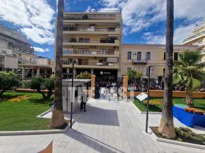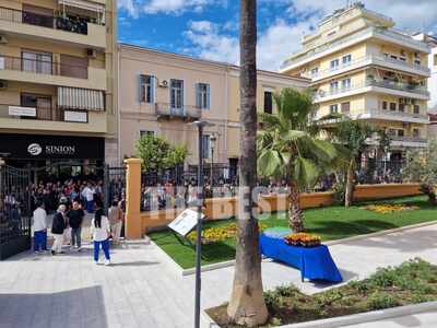 Με ενθουσιασμό στο νέο δημαρχείο εκπρόσωποι φορέων και πολίτες περιμένουν τη Φλόγα η οποία πριν από λίγο πέρασε από τη Γεφυρα Ρίου Αντιρρίου με επόμενους σταθμούς το Δημαρχείο το Πανεπιστήμιο Πατρών και στην οικοία Κωστή Παλαμά.