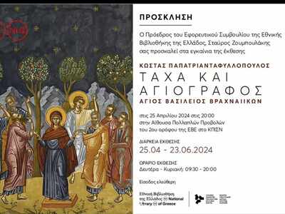 Έκθεση του ζωγράφου Κώστα Παπατριανταφυλλόπουλου από τα Βραχνέικα της Πάτρας φιλοξενείται στην Αίθουσα Πολλαπλών Προβολών του 2ου ορόφου της Εθνικής Βιβλιοθήκης της Ελλάδας, στο Κέντρο Πολιτισμού Ίδρυμα Σταύρος Νιάρχος.