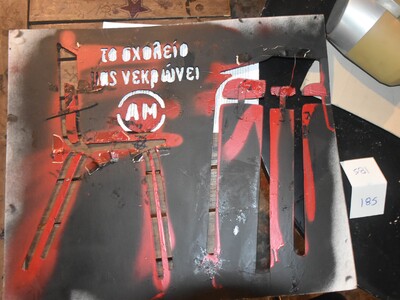 - Μάρμαρα, τούβλα έμφορτα σε καρότσι και σάκο καθώς και ξύλινα ρόπαλα πρόσφορα για επίθεση