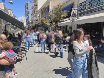 Γέμισε κόσμο το κέντρο της Πάτρας και οι καφετέριες από κόσμο το μεσημέρι της Μεγάλης Παρασκευής, μετά την Αποκαθήλωση.