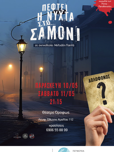 Μετά την πρώτη επιτυχημένη παρουσίαση του θεατρικού έργου ”Πέφτει η νύχτα στο Σαμονί“, η Περιφέρεια Δυτικής Ελλάδος διοργανώνει δυο παραστάσεις την Παρασκευή 10 και το Σάββατο 11 Μάϊου 2024, στο Θέατρο όροφως.