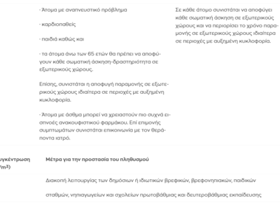 Με αυτή παρέχονται συστάσεις και γενικά μέτρα προφύλαξης της υγείας του πληθυσμού εξαιτίας της επιβάρυνσης της ποιότητας της ατμόσφαιρας.