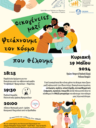 Η ανοιχτή αυτή εκδήλωση έχει τίτλο: «Οικογένειες Μαζί, Φτιάχνουμε τον κόσμο που θέλουμε».
