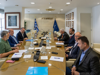Μνημόνιο συνεργασίας υπέγραψε ο Περιφερειάρχης Δυτικής Ελλάδος Νεκτάριος Φαρμάκης με τον πρόεδρο του Ινστιτούτου Μικρών Επιχειρήσεων της Γενικής Συνομοσπονδίας Επαγγελματιών, Βιοτεχνών και Εμπόρων Ελλάδας (ΙΜΕ ΓΣΕΒΕΕ), Γεώργιο Καββαθά στην Αθήνα, την Δευτέρα 13 Μαΐου 2024.
