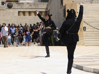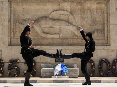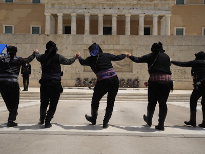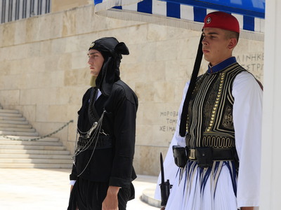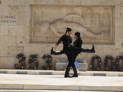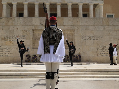 Στην αλλαγή της προεδρικής φρουράς, δύο Εύζωνες, φορώντας, αντί της καθιερωμένης, την ποντιακή στολή, έλαβαν τις θέσεις τους.