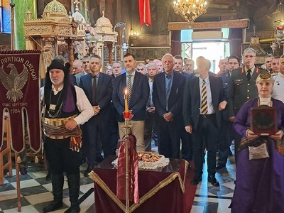 Μετά τη Δοξολογία που τελέστηκε στον Ιερό Ναό Αγίου Νεκταρίου, ο κ. Σκιαδαρέσης κατέθεσε στεφάνι στην προτομή του Αρχιεπισκόπου Αθηνών του από Τραπεζούντος Χρύσανθου Φιλιππίδη, στην πλατεία Ποντιακού Ελληνισμού, όπου προηγήθηκε επιμνημόσυνη δέηση.