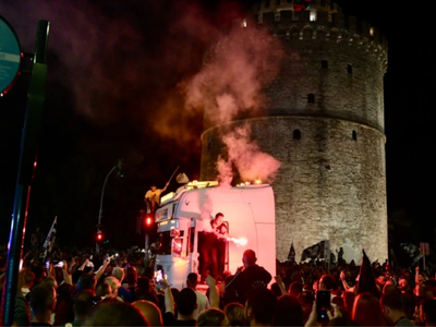 Γύρω στις 02:30 το ανοιχτό πούλμαν με τους πρωταθλητές Ελλάδας 2024 έφτασε στον Λευκό Πύργο με την... ασπρόμαυρη λαοθάλασσα να αποθεώνει τους παίκτες του Λουτσέσκου.