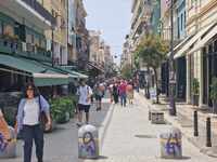 Δεν ήταν λίγοι εκείνοι που και σήμερα κυκλοφορούσαν στο κέντρο με μάσκα, για να αποφύγουν την εισπνοή σκόνης. Σχεδόν ένας στους δύο πολίτες που κυκλοφορούσαν το μεσημέρι της Τρίτης στο κέντρο της αχαϊκής πρωτεύουσας, κρατούσε στο χέρι ένα μπουκαλάκι νερό, έναν καφέ ή αναψυκτικό, ενώ οι περισσότεροι φορούσαν σαγιονάρες και πέδιλα τύπου δίχαλα.
