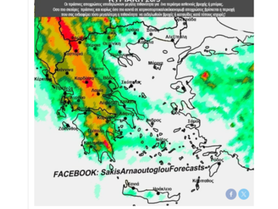 Εκτενή αναφορά στην κακοκαιρία που θα χτυπήσει τη χώρα με τα φαινόμενα να είναι έντονα την Κυριακή 26/5 έκανε ο Σάκης Αρναούτογλου, μέσω ανάρτησης του, στο Facebook. Όπως επισημαίνει πάνω στους χάρτες, οι πράσινες αποχρώσεις υποδηλώνουν μεγάλη πιθανότητα για ένα πέρασμα βροχής ή μπόρας. Όσο πιο σκούρες πράσινες και κυρίως όσο πιο κοντά σε κιτρινοπορτοκαλοκόκκινομωβ αποχρώσεις βρίσκεται η περιοχή που σας ενδιαφέρει, τόσο μεγαλύτερη η πιθανότητα να εκδηλωθούν βροχές ή καταιγίδες κατά τόπους ισχυρές. Το μεγαλύτερο μέρος της χώρας, σύμφωνα με τον χάρτη φαίνεται ότι θα επηρεαστεί από την κακοκαιρία την Κυριακή, ενώ βροχές αναμένονται και στην Αττική. Όπως φαίνεται και στους χάρτες έντονα φαινόμενα θα ξεσπάσουν την Κυριακή 26/5 στις εξής περιοχές: Κιλκίς, Φλώρινα, Καστοριά, Ιωάννινα, Καρδίτσα, Λαμία, Λειβαδιά, Κόρινθος, Καλαμάτα και Τρίπολη.