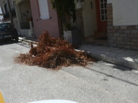 Αμέσως μετά, έσπευσαν στο ΚΑΠΗ της περιοχής Ψάχου, όπου κάποιοι είχαν πετάξει δεκάδες κλαδιά, καλύπτοντας σχεδόν ακόμα και την πόρτα του κτιρίου και κατόπιν στην Ανθείας, στις εργατικές κατοικίες και κοντά στις γραμμές του τρένου.