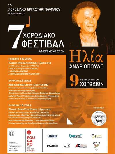 Συμμετείχε το Σάββατο 1η Ιουνίου 2024, στο 7ο Χορωδιακό Φεστιβάλ Ναυπλίου που διοργάνωσε το «Χορωδιακό Εργαστήρι Ναυπλίου» & ήταν αφιερωμένο στο σημαντικό συνθέτη Ηλία Ανδριόπουλο