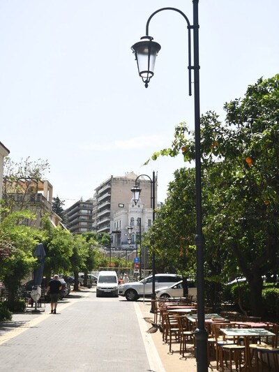 Στον συγκεκριμένο πεζόδρομο με πολλά καταστήματα εστίασης, αποξηλώνονται όλα τα υπάρχοντα φωτιστικά και γίνεται εκ’ νέου εγκατάσταση με επίστυλα, παραδοσιακά φωτιστικά σε νέες θέσεις και λάμπες τύπου LED, που συμπληρώνουν την εικόνα του ανανεωμένου πεζόδρομου, με έναν πολύ όμορφο τρόπο.