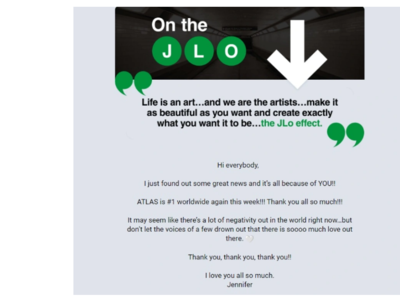 Όπως αναφέρει στο μήνυμα: «Γεια σε όλους, μόλις έμαθα κάποια σπουδαία νέα και όλα αυτά χάρη σε ΕΣΑΣ!!! Ο ATLAS είναι στο #1 παγκοσμίως και πάλι αυτή την εβδομάδα!!! Σας ευχαριστώ όλους πάρα πολύ!!! Μπορεί να φαίνεται ότι υπάρχει πολλή αρνητικότητα στον κόσμο αυτή τη στιγμή... αλλά μην αφήνετε τις φωνές των λίγων να επισκιάσουν το γεγονός ότι υπάρχει τόση πολλή αγάπη εκεί έξω. Σας ευχαριστώ, σας ευχαριστώ, σας ευχαριστώ!!! Σας αγαπώ όλους τόσο πολύ».