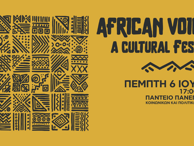 Το "Αfrican Voices", ένα Φεστιβάλ για τις φωνές της Αφρικανικής διασποράς, θα πραγματοποιηθεί στο Πάντειο Πανεπιστήμιο Κοινωνικών και Πολιτικών Επιστημών στη Λεωφ. Συγγρού, στην Αθήνα, την Πέμπτη 6 Ιουνίου από τις 17:00 έως τις 21:30.