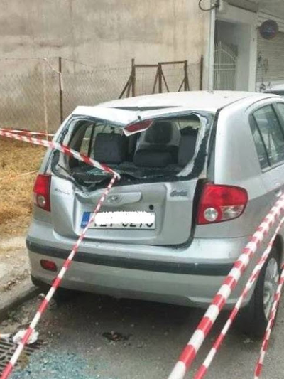 Κομμάτια από οικοδομή βρέθηκαν σε σταθμευμένο ΙΧ επί της οδού Δανιηλίδος, κοντά στην Πλατεία Μαρούδα, στην Πάτρα.