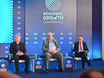 Την δεύτερη μέρα των εργασιών του Συνεδρίου ο κ. Λουλούδης συζήτησε με τον Καθηγητή του Οικονομικού Πανεπιστημίου Αθηνών και Γενικό Διευθυντή του ΙΟΒΕ κ. Νίκο Βέττα για τις προοπτικές ανάπτυξης της ελληνικής οικονομίας, με βάση την πρόσφατη έκθεση για τις Περιφέρειες της χώρας που συντάχθηκε για λογαριασμό του Παρατηρητήριου Περιφερειακών Πολιτικών. Κοινή διαπίστωση είναι ότι καταγράφονται μεγάλες αποκλίσεις των Περιφερειών της χώρας μας απ’ τις Ευρωπαϊκές, όπως και σημαντικές αποκλίσεις των Ελληνικών Περιφερειών μεταξύ τους.