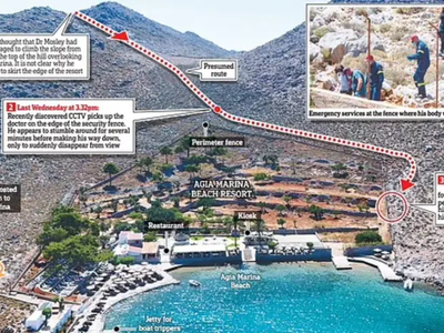 Τον Μόσλεϊ «συνέλαβε» κλειστό κύκλωμα κάμερας παραλιακού εστιατορίου στη μαρίνα του χωριού Πέδι την Τετάρτη. Λίγα λεπτά αργότερα, ο 67χρονος φαίνεται να κατεβαίνει με ζήλο μια πλαγιά, που βρίσκεται κοντά σε έναν περιμετρικό φράχτη και στη συνέχεια να χάνεται από το οπτικό πεδίο της κάμερας.