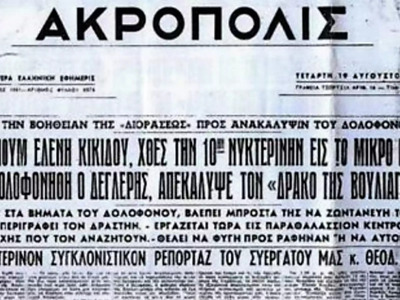 Από αυτό το αδιέξοδο ήρθε να τους βγάλει ένας δημοσιογράφος και μια μέθοδος η οποία έχει μείνει στα χρονικά της Ελληνικής Αστυνομίας. Ο άνθρωπος αυτός ήταν ένας πανέξυπνος δημοσιογράφος, ο Θεόδωρος Δράκος, ο οποίος ανακοινώνει από την εφημερίδα «Ακρόπολις» ότι το πιο γνωστό μέντιουμ της εποχής, η Ελένη Κικίδου, θα μπορούσε να βοηθήσει στις έρευνες υποδεικνύοντας τον δράστη.