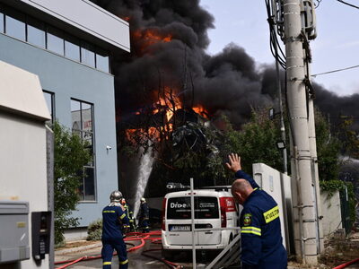 Η φωτιά ξέσπασε στις 15:30 στο εργοστάσιο της εταιρείας PAL SA, της Παλαμήδης ΑΕ, του Βασίλη Παλαμήδη, συζύγου της πμευμονολόγου και πρώην αναπληρώτριας υπουργού Υγείας, Μίνας Γκάγκα.