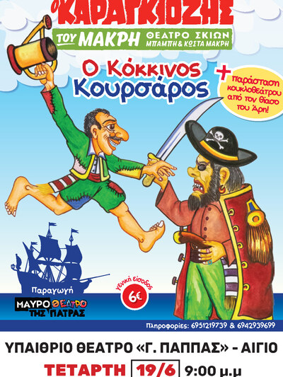 Η νέα κωμωδία «Ο Καραγκιόζης και ο Κόκκινος Κουρσάρος» από τον Καραγκιόζη του Μακρή, είναι γεμάτη γέλιο ευτράπελα και κωμικές καταστάσεις.