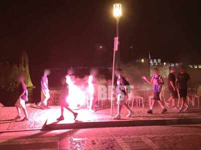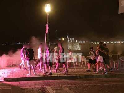Νεαροί φίλοι της πράσινης ομάδας, στην Ναύπακτο, με τη λήξη του αγώνα, ξεκίνησαν τα πανηγύρια.