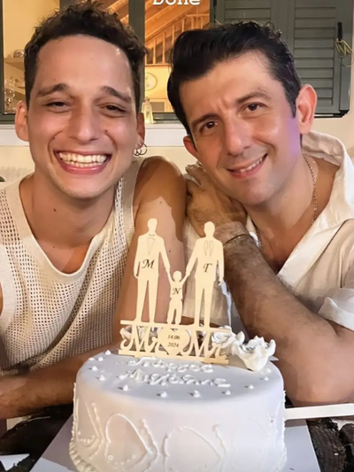 Ο Μιχάλης Οικονόμου έκανε γνωστό το χαρμόσυνο γεγονός στα κοινωνικά δίκτυα, δημοσιεύοντας μια φωτογραφία όπου ποζάρει με τον σύζυγό του μπροστά από τη γαμήλια τούρτα τους.