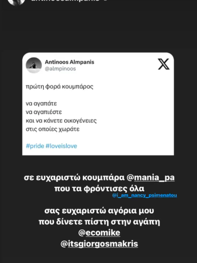 Κουμπάρος του ζευγαριού ήταν ο Αντίνοος Αλμπάνης, όπως φάνηκε από τις αναρτήσεις.