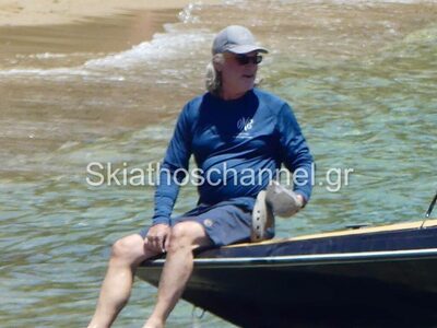 Οι δυο σταρ, απόλαυσαν το μπάνιο τους στις παραλίες Αχλαδιές, Μάραθα, Αγία Ελένη και Διαμάντι, όπως γράφει το Skiathoschannel.gr