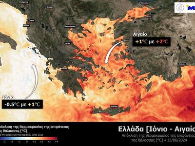 Σύμφωνα με το meteo, σε περιοχές του Αιγαίου και των Δωδεκανήσων παρατηρούνται τιμές άνω των 25-26 °C στα πρώτα 10 εκ βάθος στην επιφάνεια της θάλασσας.