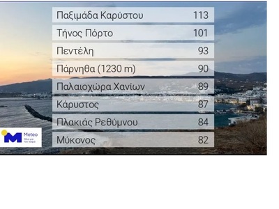 Στον παρακάτω πίνακα παρουσιάζονται οι ριπές του ανέμου έως τις 17:30 της Πέμπτης 20/06.