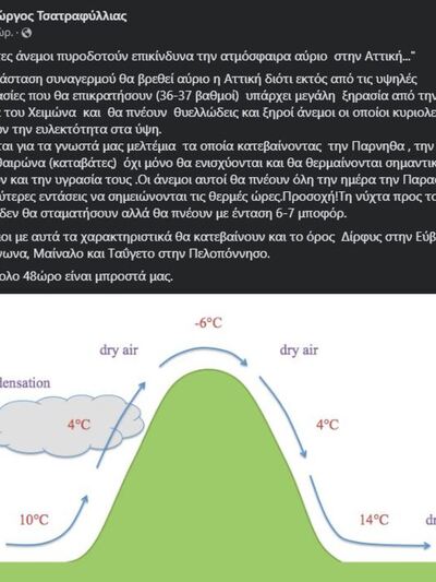 "Καταβάτες άνεμοι πυροδοτούν επικίνδυνα την ατμόσφαιρα αύριο στην Αττική..."