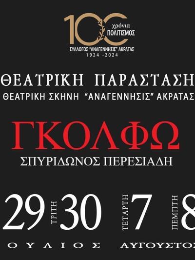 Θερμή υποδοχή επιφύλαξε το θεατρόφιλο κοινό της περιοχής της Ακράτας στην «Γκόλφω» που ανέβασε το θεατρικό τμήμα «Αναγέννησις Ακράτας» που μάλιστα φέτος γιορτάζει 100 χρόνια πολιτισμού.