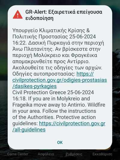 ΝΕΟΤΕΡΗ ΕΝΗΜΕΡΩΣΗ: Στην περιοχή ήχησε το 112 και αρχικά κάλεσε τον κόσμο να απομακρυνθεί από την περιοχή Άνω Πλατανίνης προς τη Ναύπακτο.