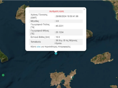 Στα 39 χλμ βόρεια της Μύρινας το επίκεντρο