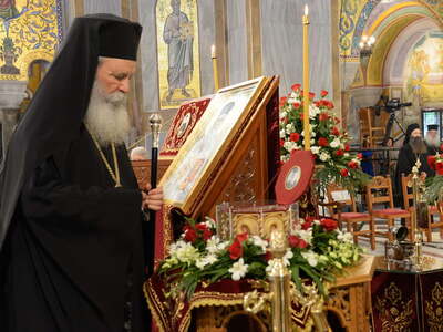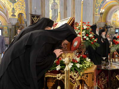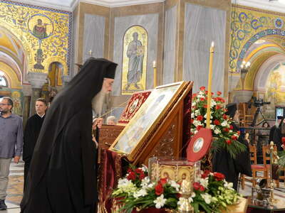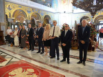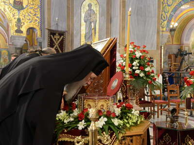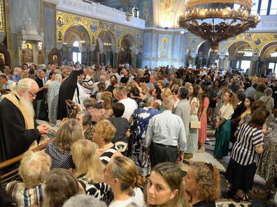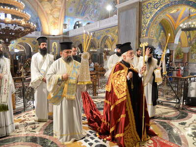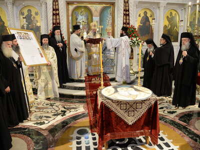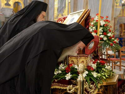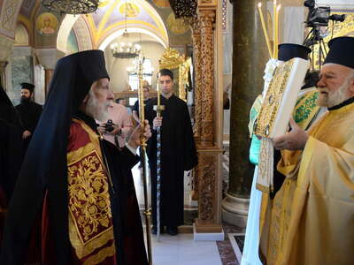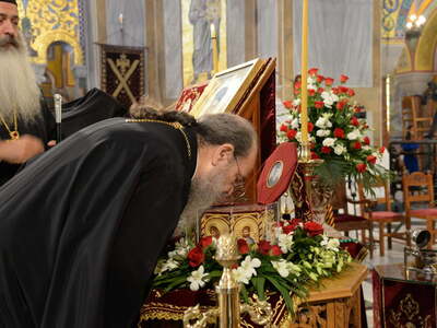 Τῆς Θείας Λειτουργίας προέστη, ὁ Σεβασμιώτατος Μητροπολίτης Φιλαδελφείας κ. Μελίτων, ἐκ τοῦ Οἰκουμενικοῦ Πατριαρχείου, ὁ ὁποῖος ἐκόμισε τίς Πατριαρχικές εὐχές καί εὐλογίες τοῦ Παναγιωτάτου καί Οἰκουμενικοῦ Πατριάρχου κ.κ. Βαρθολομαίου καί ἐκήρυξε τόν θεῖο λόγο.