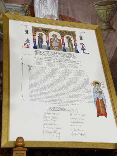 Πρός συμμετοχήν προσωπικῶς εἰς τήν πανέορτον ταύτην καί λαμπράν καί φωτοφανῆἡμέραν ἦλθε καί ἡ ἐλαχιστότης μου, τῇ ὑμετέρᾳ εὐγενεῖ καί πρόφρονι προσκλήσει, Σεβασμιώτατε ἅγιε Ποιμενάρχα, ἐκ τῆς Βασιλίδος τῶν Πόλεων, ἐκ τοῦ ΟἰκουμενικοῦΠατριαρχείου, τοῦ ἱεροῦ Κέντρου τῆς Πίστεως καί τοῦ Γένους μας, τοῦ Κέντρου τῆςὈρθοδοξίας, διά να μετάσχῃ χαρᾶς ἀνεκλαλήτου καί μεταφέρῃ τήν καί σήμερον ὡς«αὐγήν» τιμωμένην καί ὡς «κραυγήν» ἐκπεμπομένην μαρτυρίαν τοῦ πανσέπτου τούτουπαλλαδίου τοῦ Γένους μας καί τάς εὐχάς καί εὐλογίας τοῦ Προκαθημένου τῆς ὈρθοδοξίαςΟἰκουμενικοῦ μας Πατριάρχου Βαρθολομαίου.