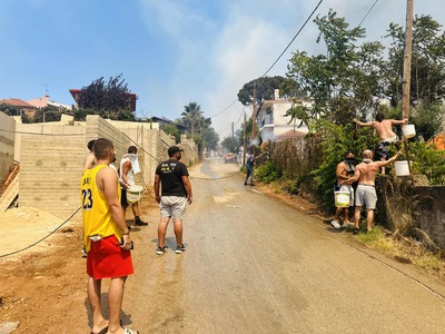 Εργαζόμενοι του Δήμου και της ΔΕΥΑΠ έχουν ριχθεί στη μάχη κατά της φωτιάς συνδράμοντας τις δυνάμεις της Πυροσβεστικής Υπηρεσίας και των εθελοντών, με μηχανήματα και υδροφόρες του Δήμου και της ΔΕΥΑΠ.